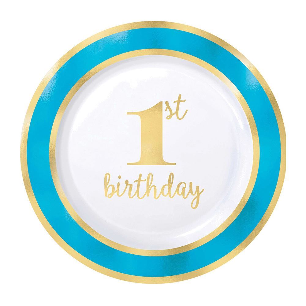 - Includes 10 1st Birthday Blue Plates Hot Stamped