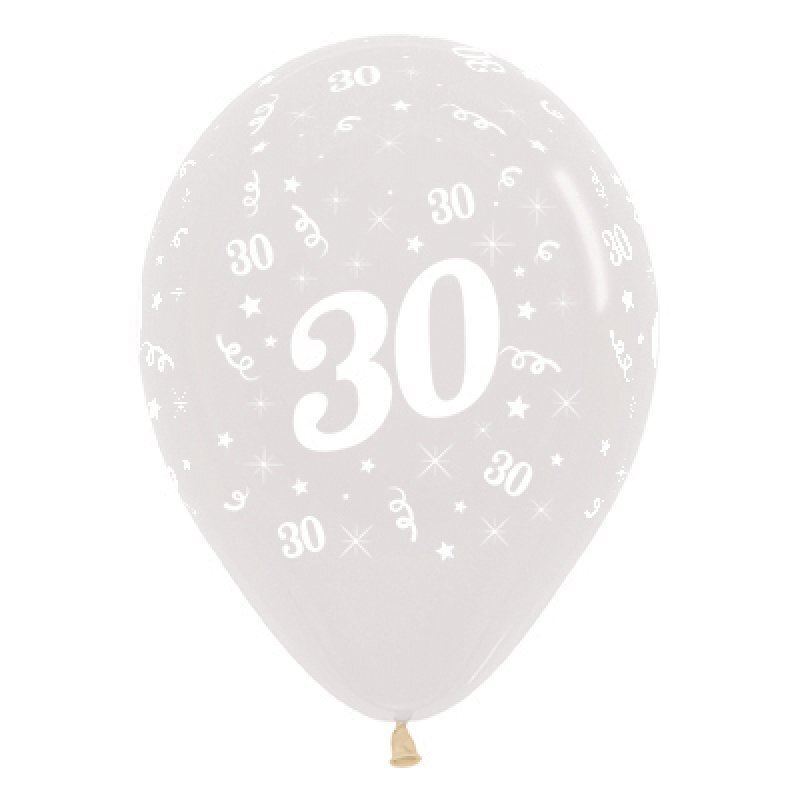 30cm Age 30 Crystal Clear Latex Balloons 6 Pack