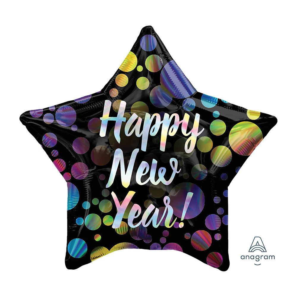 45cm Standard Holographic Iridescent Happy New Year Bubbles Star Foil Balloon
