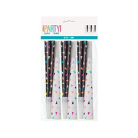 • Includes 6 Confetti Print Horns - Black & White