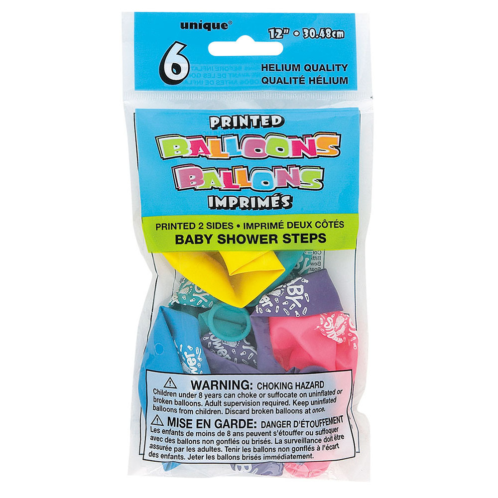 30cm Baby Steps Pastel Printed Balloons 6 Pack