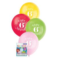 30cm Printed Balloon - 6th Happy Birthday Printed Balloons 8 Pack