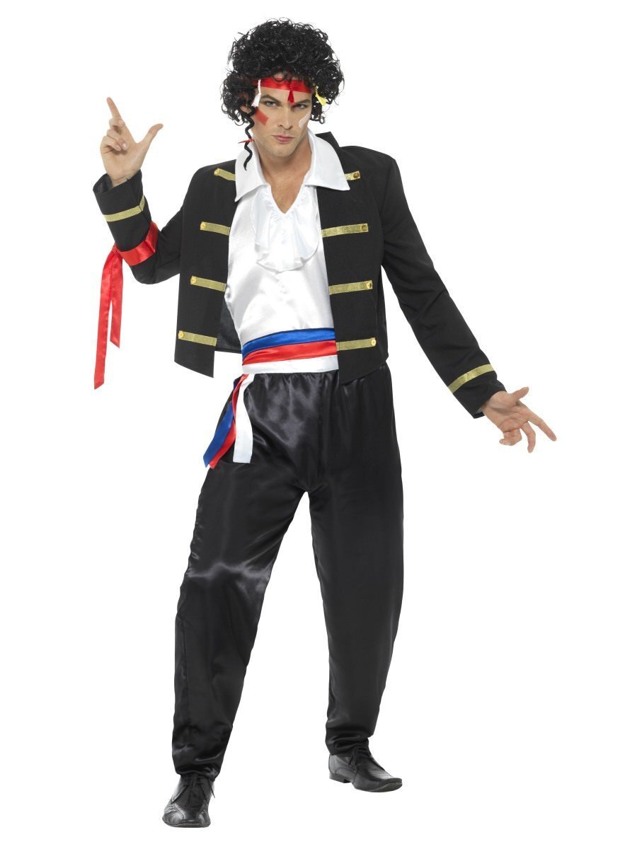 • 80s New Romantic Costume, Black, with Jacket, Trousers, Shirt & Headband