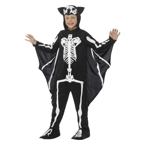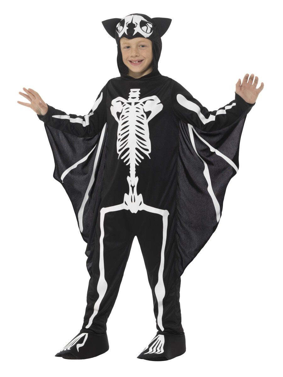 • Bat Skeleton Costume, Black, with Hooded Bodysuit & Attached Wings