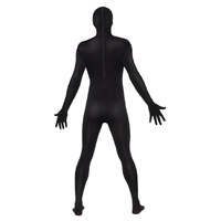 This crowd pleasing adults black second skin full body zentai suit is suitable for both male and female and is brilliant for adding a touch of mystery without having to reveal your identity. This costume comes complete as an all in one lycra/spandex bodysuit which has a matching bumbag, a back zip, concealed fly and under chin opening. The advantages of this costume is that you can see through it and people can't see you, you can breathe with ease and drink freely through the costume.