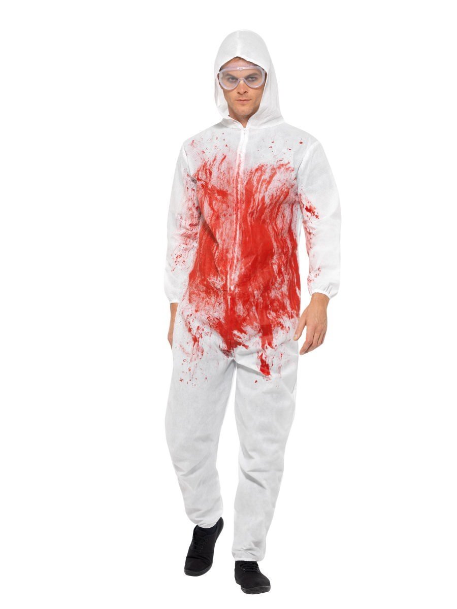 Totally transform yourself into a Crime Scene Investigator when you wear our brilliant Bloody Forensic Overall costume. Perfect for Halloween, this fuss free fancy dress costume contains a large white, blood-splattered jumpsuit, with a pair of Goggles also included to complete look. To make your costume truly terrifying, why not add some more Fake Blood?