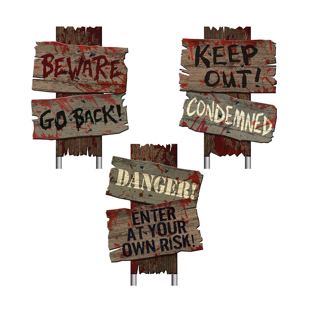 Get ready for Halloween with our Cemetery Sidewalk Signs! This 3 pack is designed to add a touch of fright to your home. Each sign is crafted to withstand the elements, ensuring your haunted house is the talk of the neighborhood!