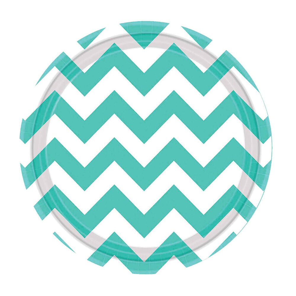 Chevron Round Paper Plates Robin's-egg Blue 17cm 8 Pack