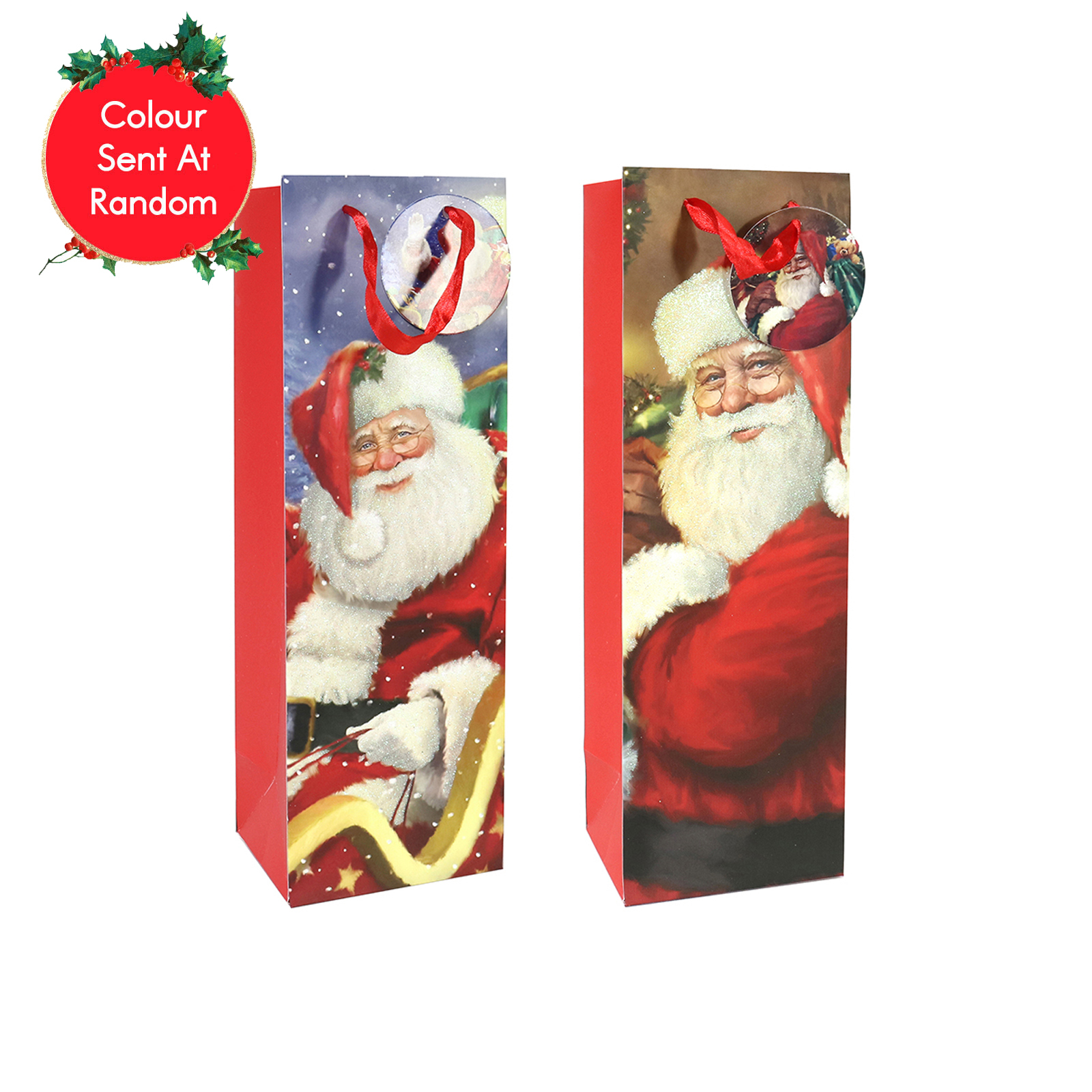 - Includes 1 Christmas Giftbag Bottle Bag Classic Claus Glitter