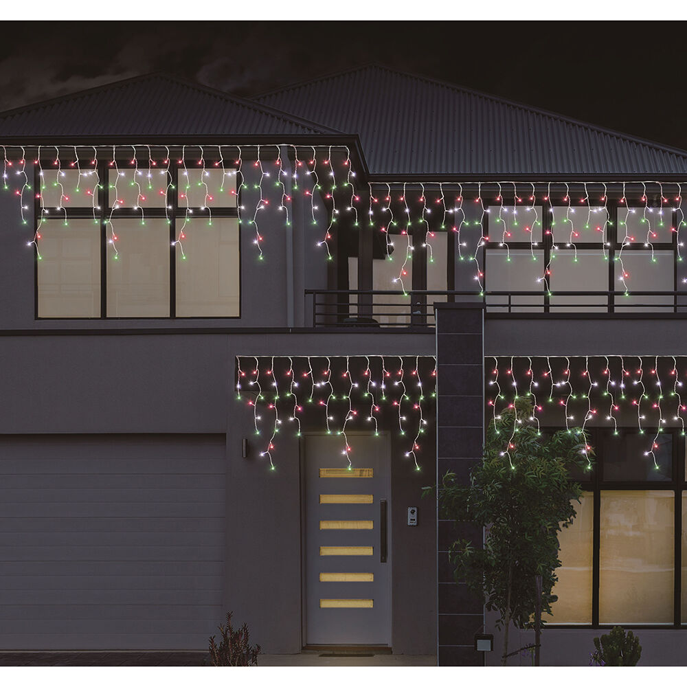 Christmas Snowing Icicle Lights 960 LED – Red Green White Outdoor Roof Lights with Timer