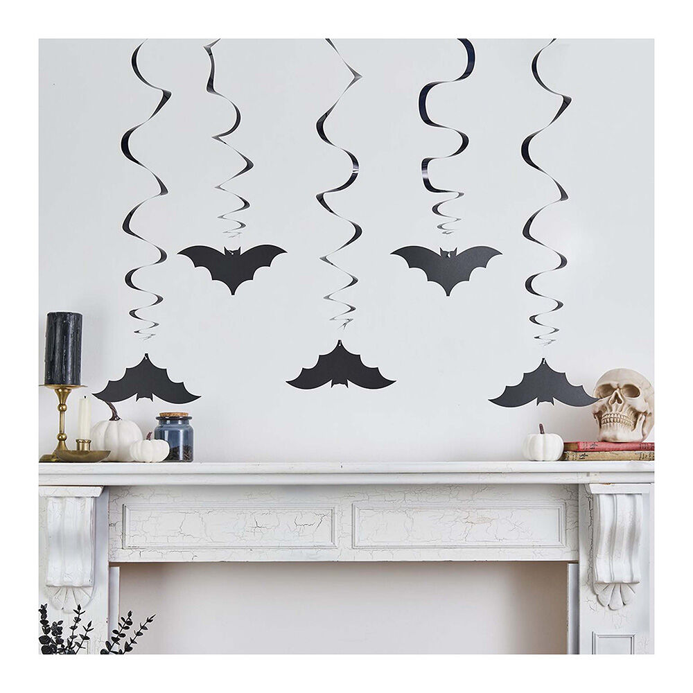• Includes 5 Creepy Chic Bat Swirl Decorations