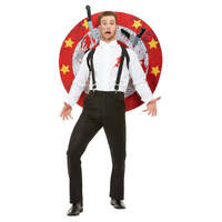 • Deluxe Knife Thrower Costume, Red & White, with Shirt, Braces, Target Board & Velcro Knives