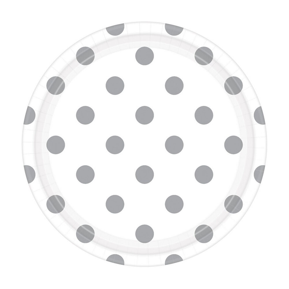 Dots Round Paper Plates Frosty White 8 Pack