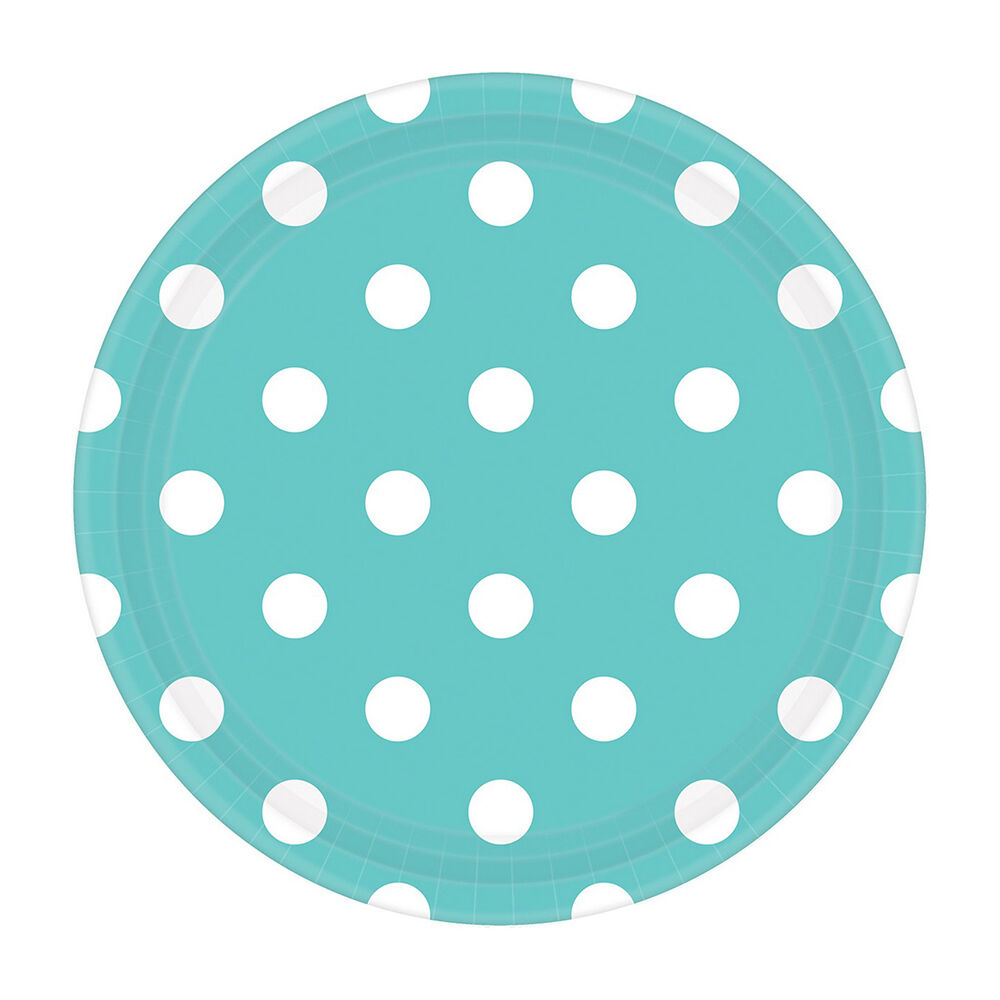 Dots Round Paper Plates Robin's Egg Blue 17cm 8 Pack