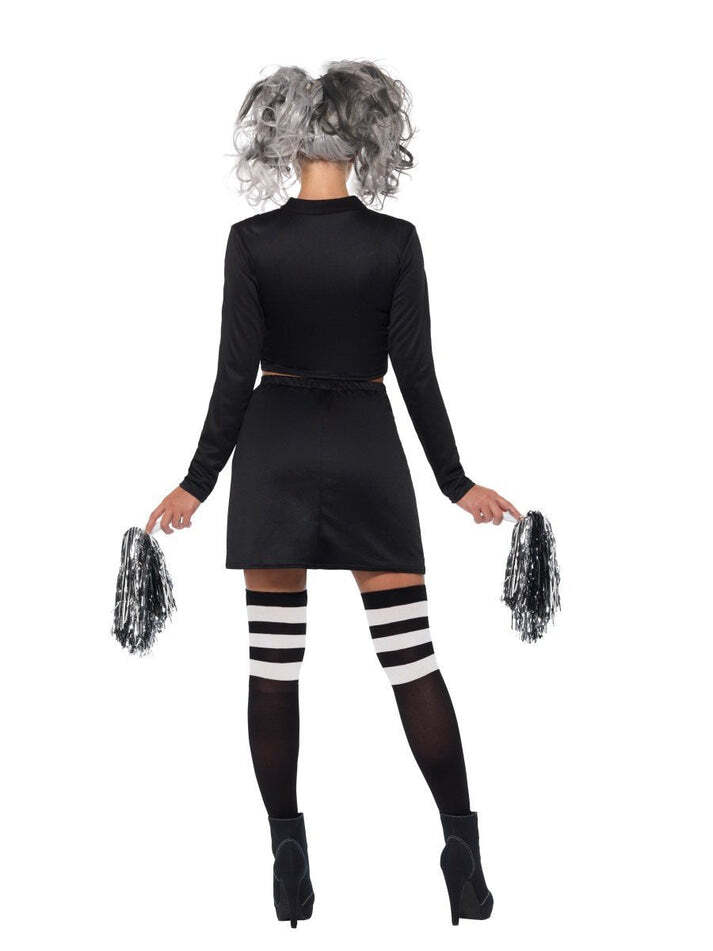 Look like you're straight out of High School of Horror when you wear our Fever Gothic Cheerleader Costume. Great for Halloween, this outfit can also be worn on any occasion and contains aw Black and White Crop Top and Skirt, with a pair of Pom Poms also included to help lead the 'Scream Team'. Don't forget to complete the look with the Cheerleader Opaque Hold Ups.