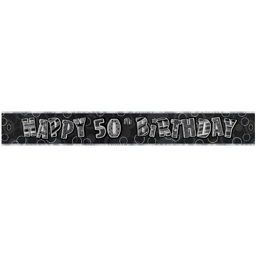 Glitz Black And Silver 50th Birthday Foil Banner 3.65m