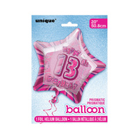 50cm Glitz Pink 13th Birithday Star Foil Balloon Packaged