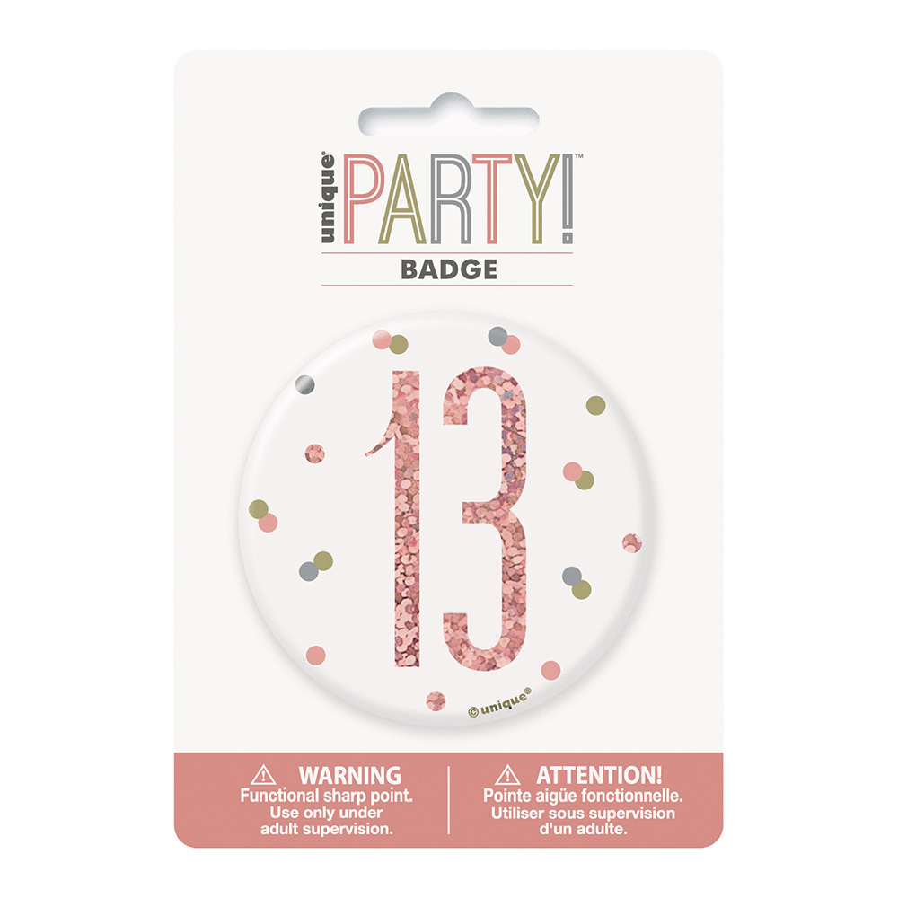 • Include 1 Glitz Rose Gold Birthday Badge No. 13
