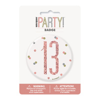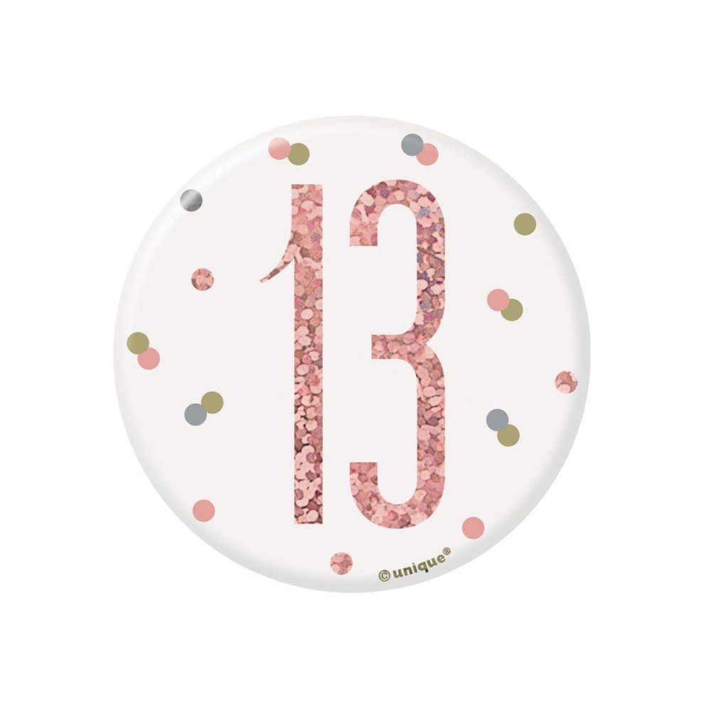 Glitz Rose Gold Birthday Badge No. 13 7.6cm