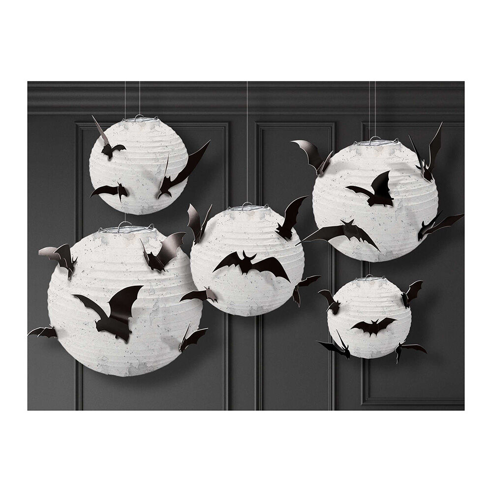• Includes 5 Halloween Classic Black & White Paper Lanterns with Bat Add Ons