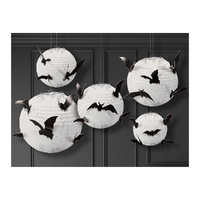 Halloween Classic Black & White Paper Lanterns with Bat Add Ons 5 Pack