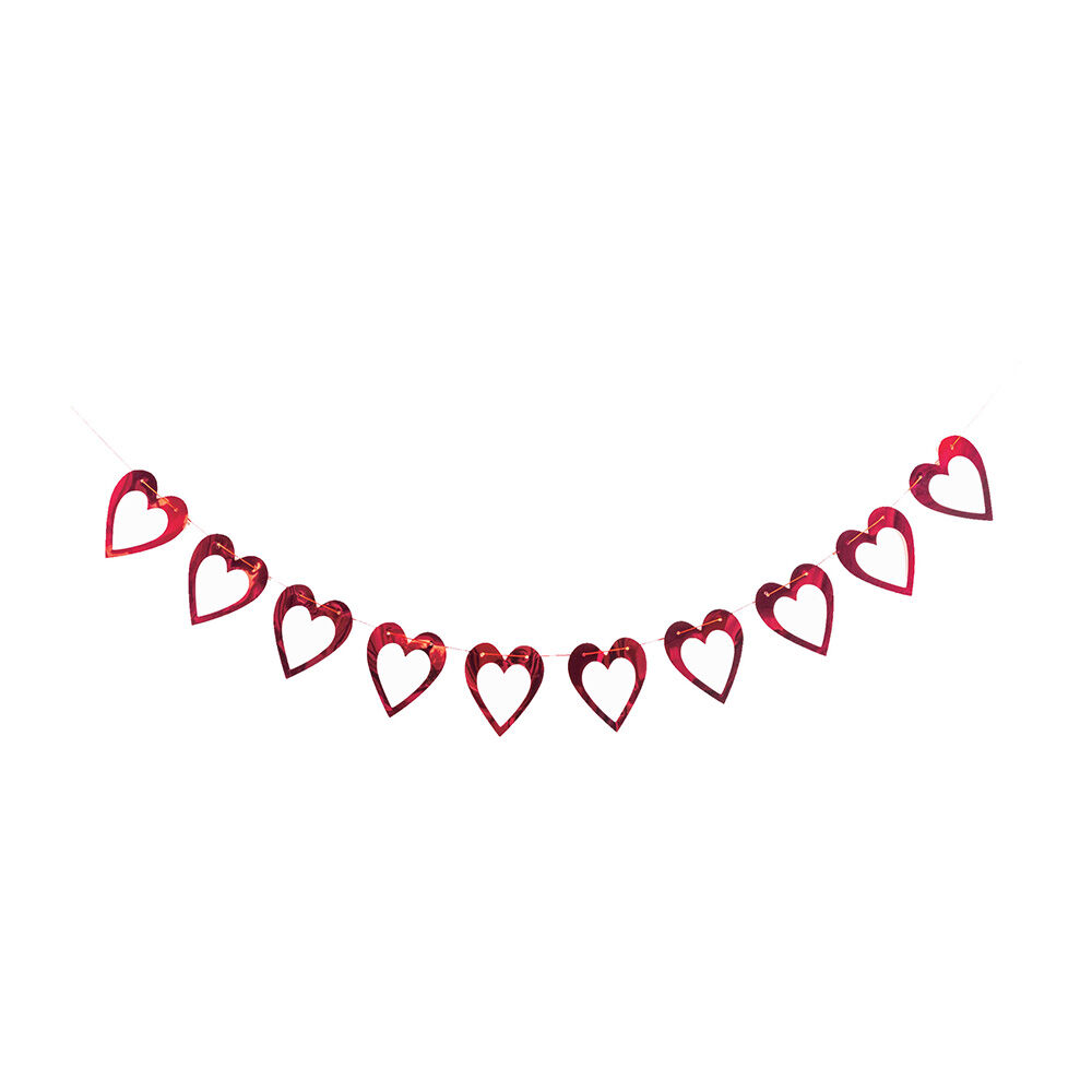 Decorate with love using this Hearts Foil Garland. Featuring shiny foil hearts measuring 14cm x 11cm strung along a 2m length, this garland adds a festive and romantic touch to any Valentine’s Day celebration, party, or home décor. Lightweight and easy to hang, it’s perfect for walls, tables, or party backdrops.