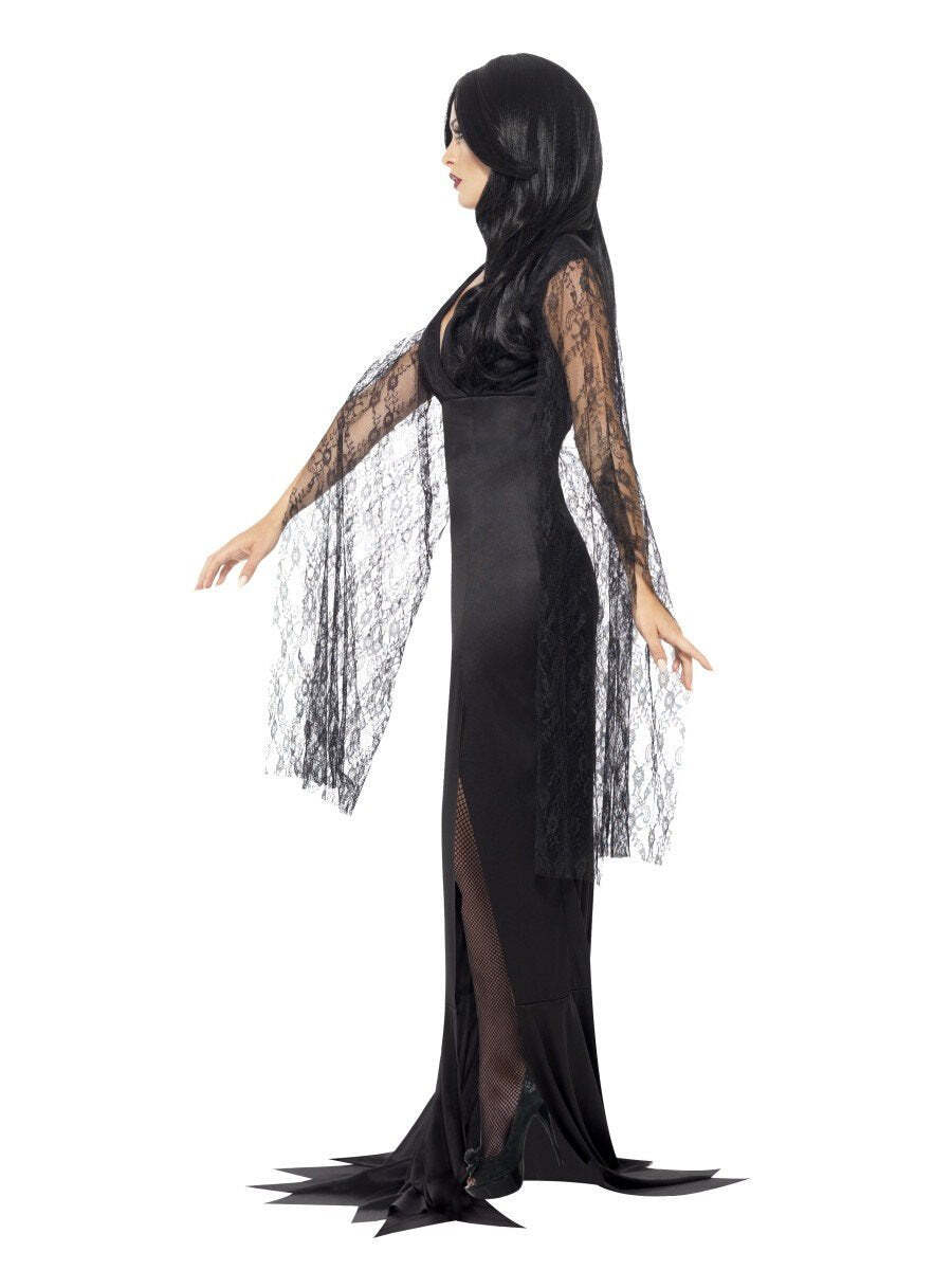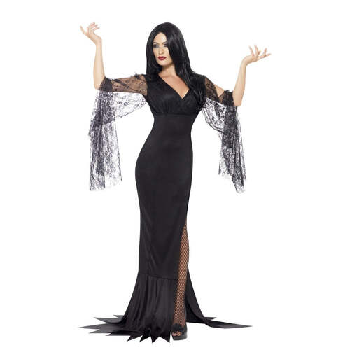 Halloween is fast approaching and our elegant Immortal Soul Costume is perfect for any event or party you may be attending. This costume is easy to make your own with ideas of Morticia Addams, a vampire goddess or even a witch coming to mind. This costume features an elegant, long, black dress in stretch fabric with lace features around the bust. It also includes black lace, draping sleeves, a split up the leg of the skirt and a fishtail hem line. Have a look through our accessories range to make this costume your own by adding little extras to create that perfect look. Shoes, fishnets and wig not included.