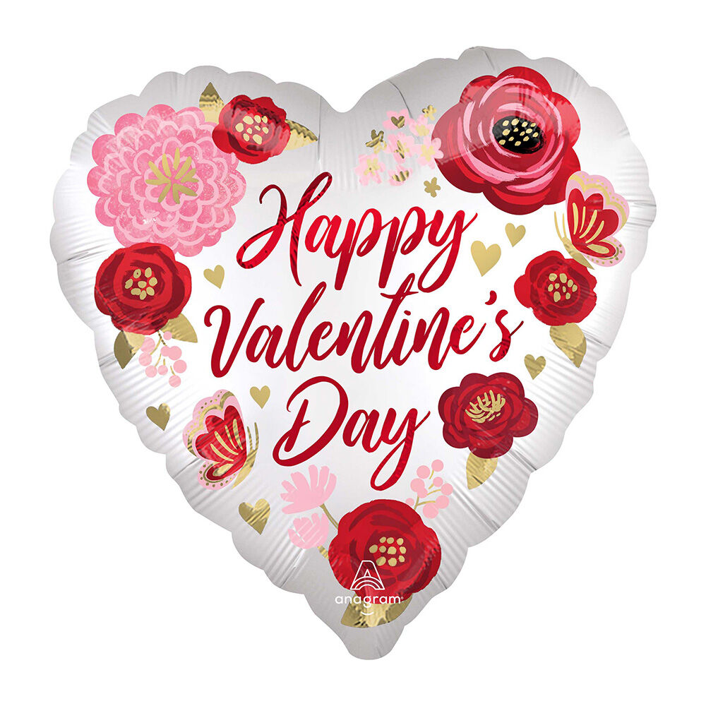 Jumbo HX Happy Valentine's Day Satin Painted Flowers Foil Balloon
