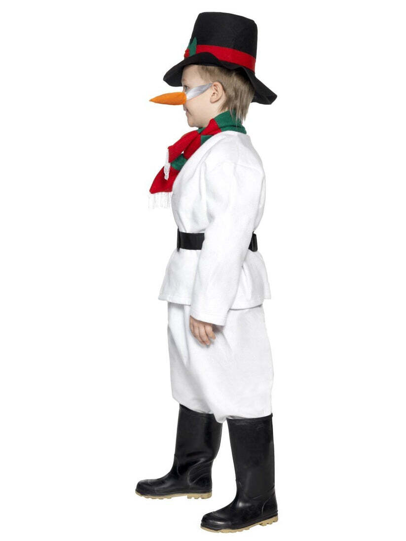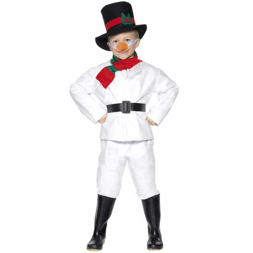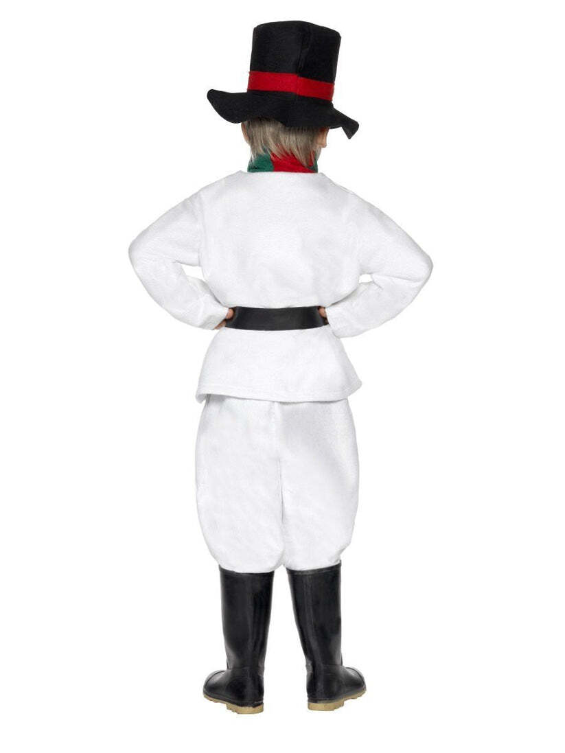 Get into the festive spirit this christmas with our kids boys snowman fancy dress costume which comes complete with a white long sleeved top, matching trousers, a black top hat which has a red band and holly detailing, a red and green scarf, a black belt and a orange carrot nose which comes on an elastic string. Frosty the snowman was a jolly happy soul!