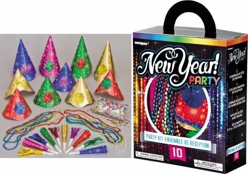 Kit Includes: 10 Fancy Party Hats, 10 Bead Necklaces, 5 Horns, 5 Squawkers and 70.8g (2.5oz) Foil Confetti