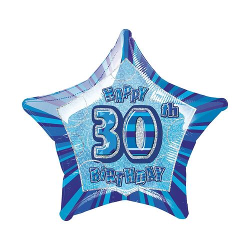 50cm Glitz Blue 30th Birthday Star Foil Balloon Pa