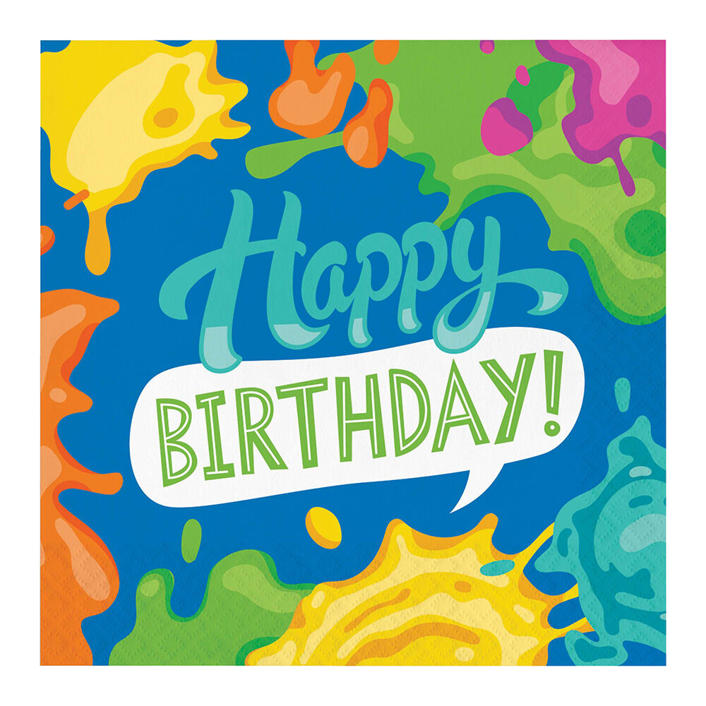 Make your party pop with colour using these Paint Splatter Lunch Napkins! Covered in a lively mix of bright, artistic splashes, these napkins are perfect for birthdays, art-themed parties, or any creative celebration. Both stylish and practical, they add a fun, expressive touch to your table while keeping things clean and colourful!