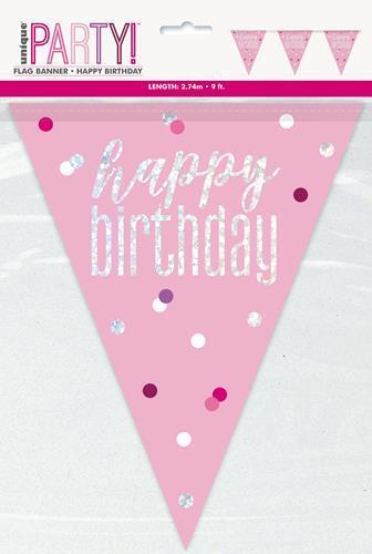 Pink Prismatic Foil Flag Banner - Happy Birthday 2.74m