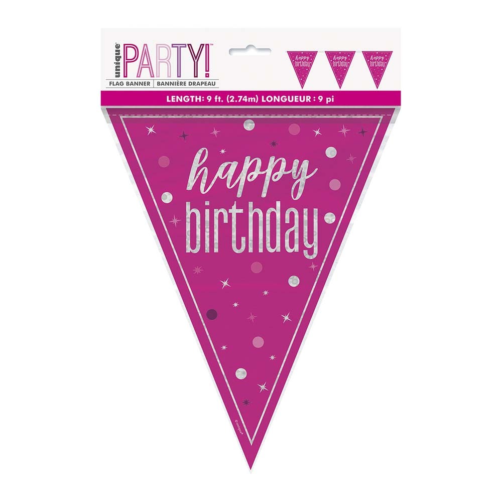 • Includes 1 Happy Birthday Glitz Pink Foil Flag Banner