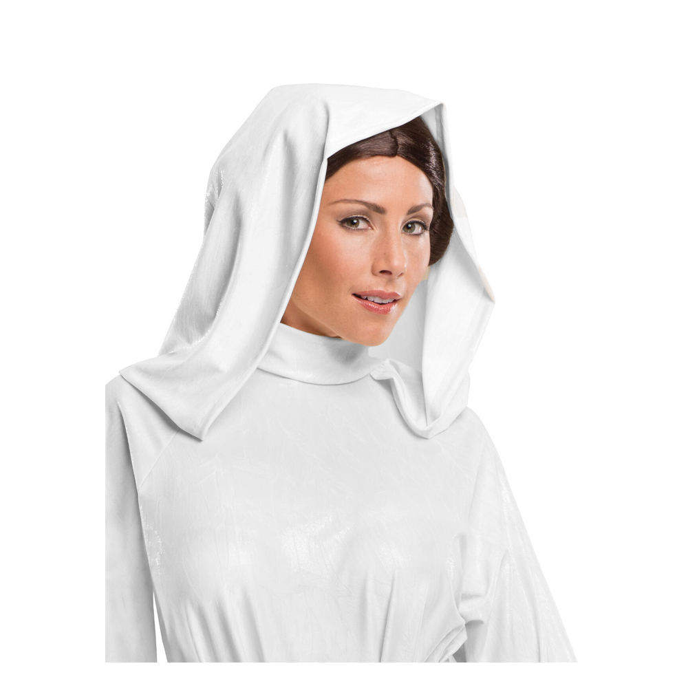 Become the Rebel Alliance's Greatest Leader. Fearless and strong, she, along with friends like Han Solo and brother Luke Skywalker bring down the Death Star in the famous Lucas Film and Disney Star Wars series. Played by the iconic Carrie Fisher, Princess Leia Organa appears in Star Wars: A New Hope (1977), The Empire Strikes Back (1980), Return of the Jedi (1983), Revenge of the Sith (2005), The Clone Wars (2008), Star Wars: Rebels (2014), The Force Awakens (2015), Rogue One (2016) and The last Jedi (2017). She is known for her trademark long white dress and immaculate plaited hair buns. This woman is a heroine of all the Galaxies as she fights like a Jedi with her lightsaber. Dressed as Princess Leia, you know the force will always be with you.