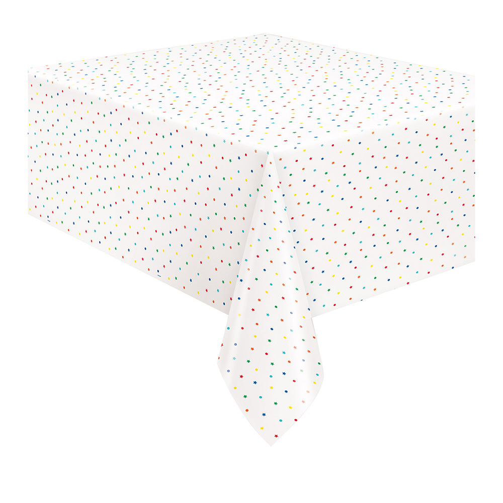 • Includes 1 Rainbow Dots & Stars Printed Tablecover