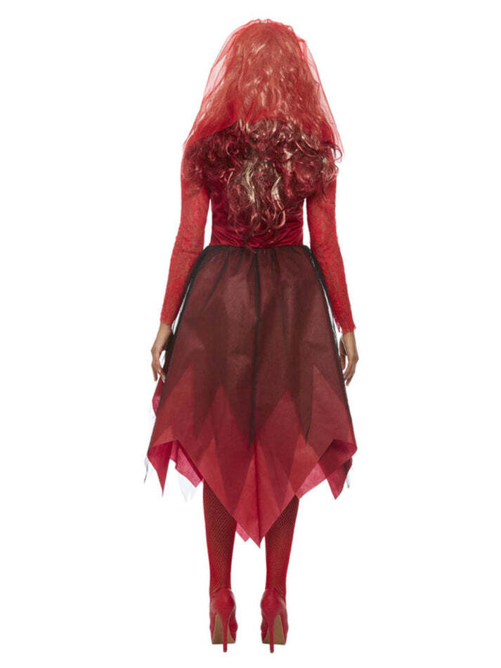 Prepare to embrace the eerie and haunting beauty of the afterlife with our Graveyard Bride Costume in Red! This Halloween costume is not just an outfit; it's a thrilling and captivating ensemble that combines the mystique of a bride with the darkness of the graveyard.