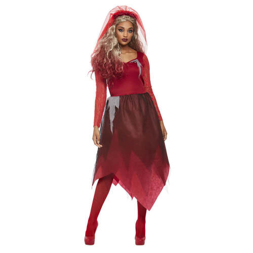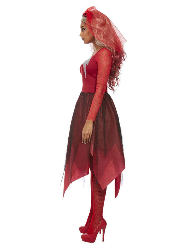 • Graveyard Bride Costume, Red, Dress & Veiled Headband