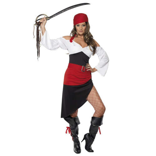 • Sassy Pirate Wench Costume with Skirt, Top, Belt and Headscarf