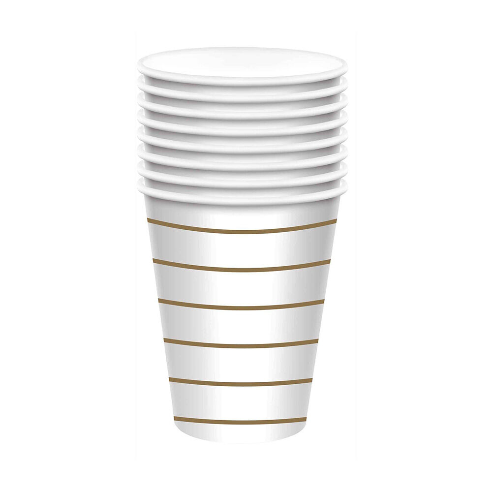 Stripe Paper Cups Gold HC 266ml 8 Pack