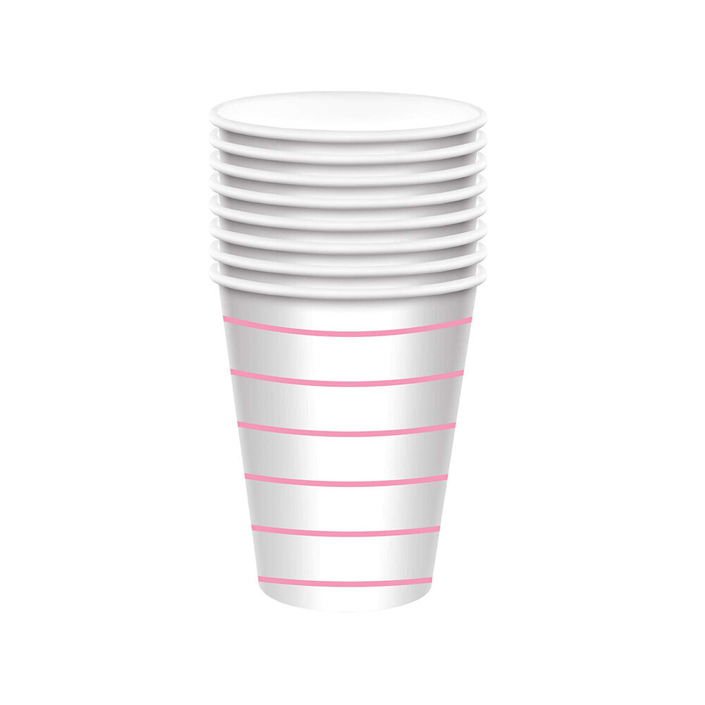 Stripe Paper Cups New Pink HC 266ml 8 Pack