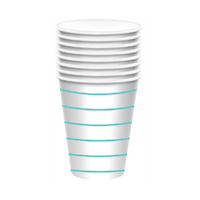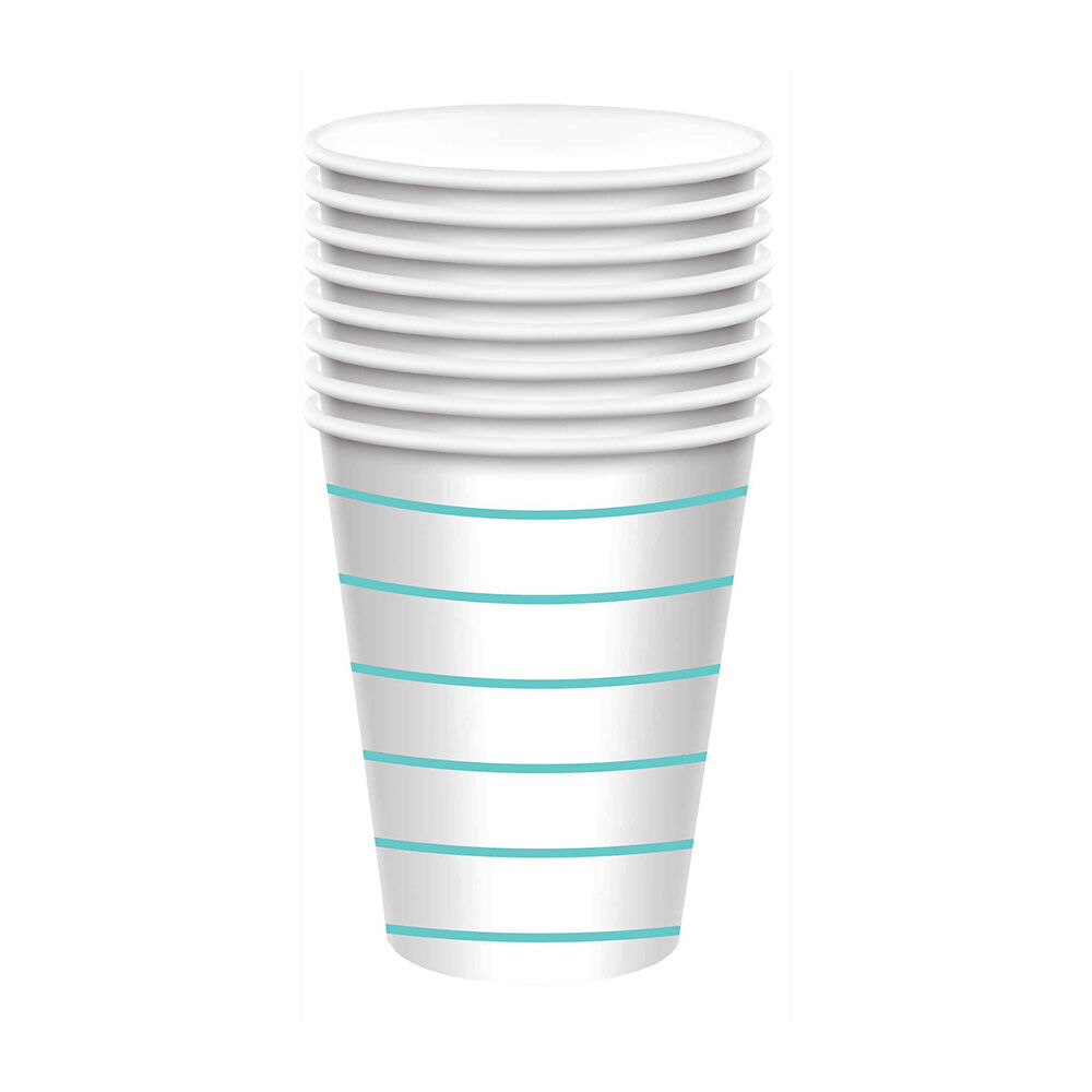 Stripe Paper Cups Robin's Egg Blue HC 266ml 8 Pack