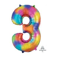 SuperShape Rainbow Splash Numeral 3. Foil Balloon