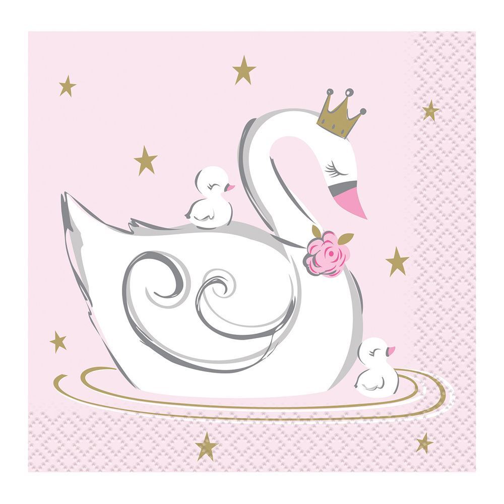 Swan Birthday Beverage Napkins 2ply 25cm X 25cm 16 Pack