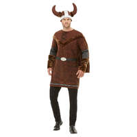 • Viking Barbarian Costume, Brown, with Tunic, Cape & Helmet