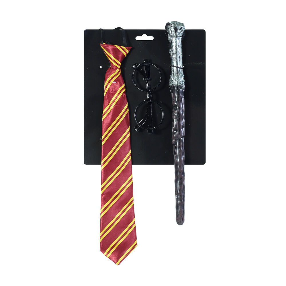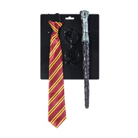 • Signature red and gold necktie adds instant wizard flair