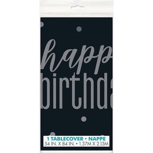 Black And Silver Happy Birthday Printed Tablecover 137cm x 213cm