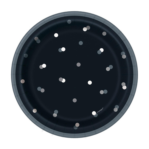 Black And Silver Happy Birthday Paper Plates 23cm 8 Pack