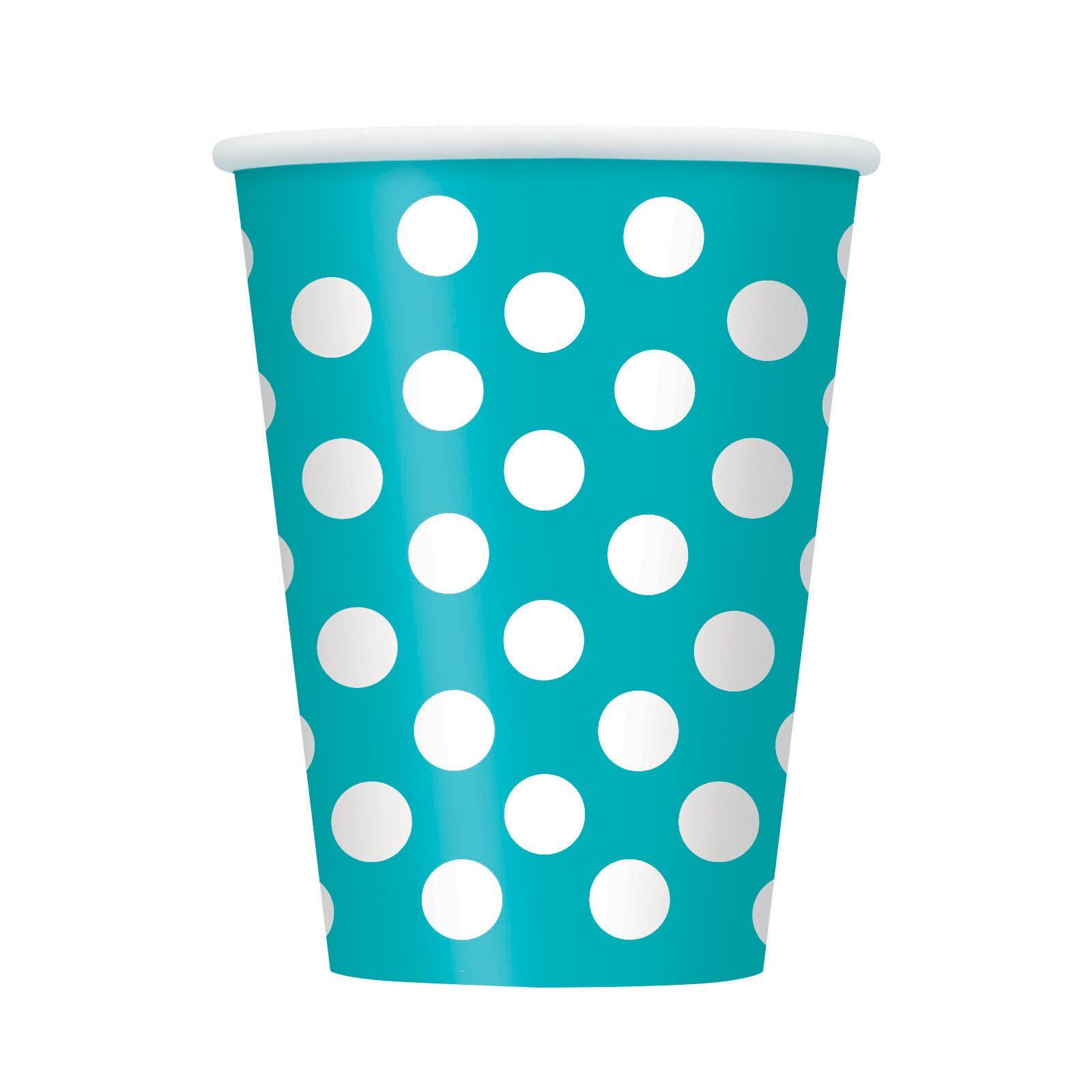 Dots Caribbean Teal Paper Cups 355ml 6 Pack