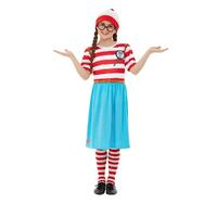 • Where's Wally? Wenda Deluxe Costume, Red & White, Dress with 3D Print, Hat, Tights & Glasses